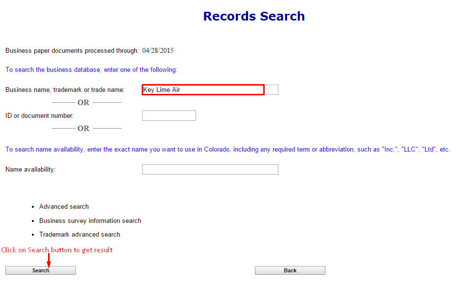 The Business Records Department provides searches on corporations limited partnerships limited liability companies. Just because you have an idea and have chosen a business name doesnt mean its available. A list of results will be returned to you that may be the same or similar to the name that you have chosen for your business.